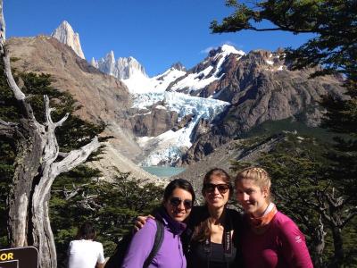 Melina: aus Buenos Aires, wir trafen uns in Ushuaia und teilten dort das Hochbett und ihren Foen. Somit war der Tag besiegelt mit ihr zu wandern. Tatjana aus Peru, wohnhaft in Sao Paulo, auch aus unserem Zimmer war gleich mit von der Partie. Leider sind wir an dem Tag nicht zu weit, weil Regen angekuendigt war. Trotzdem waren wir den ganzen Tag unterwegs. Und trafen am Abend Francisco und seinen Freund wieder. Wir hatten ein grosses Reste essen mit Wein. Es faellt mir immer noch schwer meinen Hunger auf Abends um zehn aufzuschieben. Und.ich ersuche gerade viel von der Suedamerikanischen Entspanntheit zu erlangen. Nach einem Tag in dieser Runde zu der sich noch Julie gesellte, hatte ich meinen Spitznamen Stressandra weg. Ich duehle mich so German und muss schon selber drueber lachen. Und dann wanderten wir los am Freitag, abgekuerzt mit dem Bus um die die Laguna de los Tres zu erreichen. Mit ueblicher Gruppendynamik von schnellen bis langsamen Teilnehmer. Als Deutsche wird man auf Grund des Tempos schnell dem marschierenden Volk, absolut lieb gemeint, zugerechnet. Ich hatte schon das grosse ganze im Kopf: wie kriegen wir die langsamste an diesem Abend vor Einbruch der Dunkelheit zurueck. Ein Schweizer unterstrich meine Meinung , als wir um vier immer noch mit dem Bergaufstieg beschaeftigt waren. Es hinderte meine Truppe nicht daran ueber eine Stunde die sagenhafte Aussicht an der Laguna zu geniessen. Ich denke die Bilder sprechen Baende. Und ich entspannte mich auch. Puenktlich;) waren wir ja auch schon um halb zehn wieder im Ort. Zuegig endete fuer mich der Tag und ich habe schon lange nicht mehr so tief geschlafen.